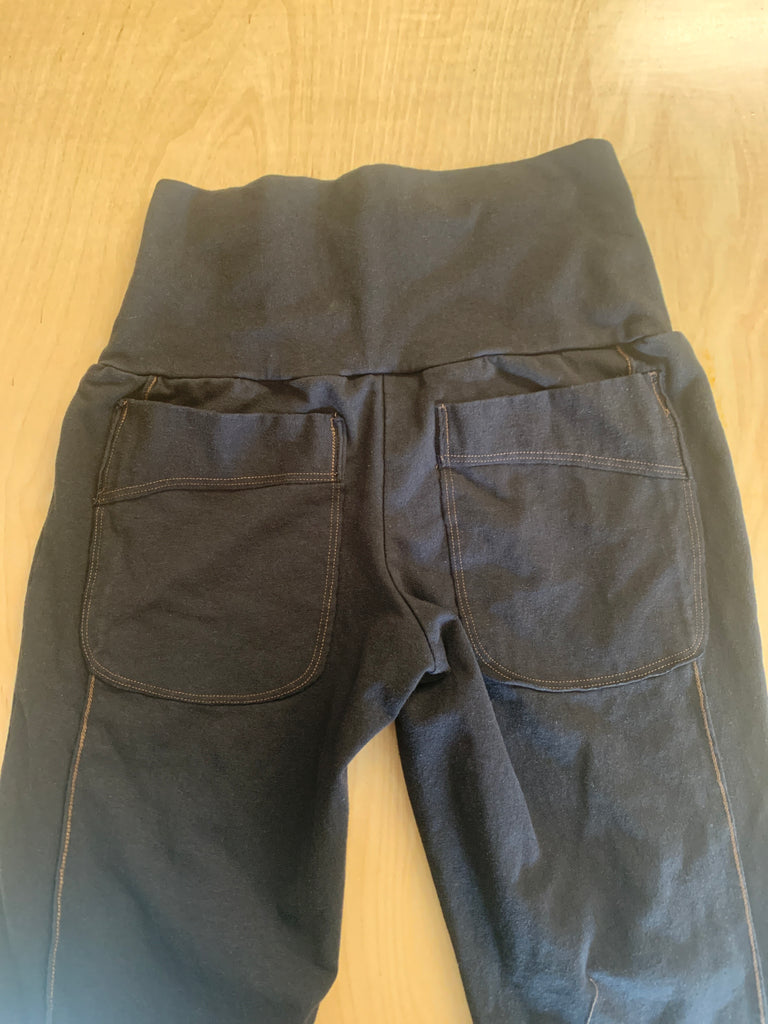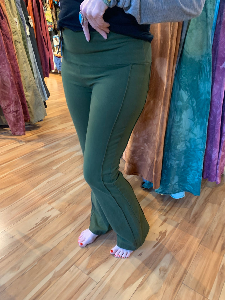 The Yoga Pant is made from our Stretchy 53% Hemp/ 42% Organic Cotton/ 5% Spandex medium weight jersey, and has a high waist fit to be worn either as a secure high waisted pant, or a fold down waist for the lower rise preference. It is complete with a subtle pocket in it's waistband, 2 back pockets and flared detail lines going down the sides of the legs. These yoga pants can also be layered and worn into your daily life. They are fitted in the waist, hips, and upper leg, and have a slight boot cut flare at the bottom.